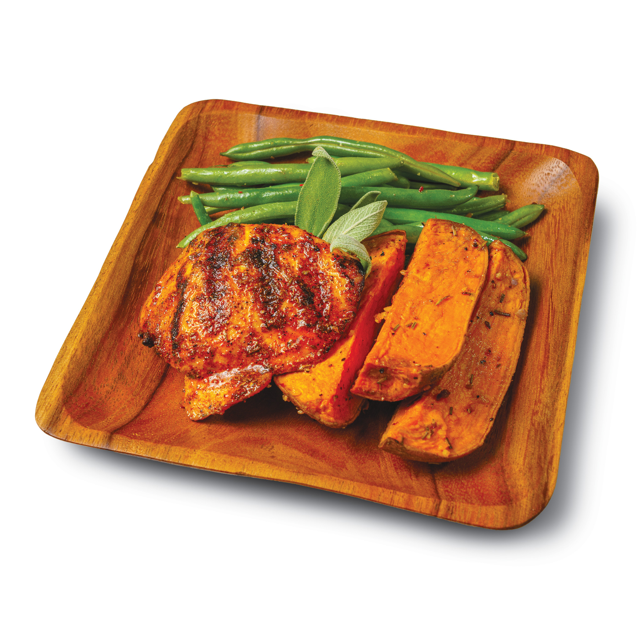 Featuring chicken breast seasoned to perfection with our signature blackening spice blend, paired with soft sweet potatoes and crisp green beans, this meal is sure to become one of your favorites.